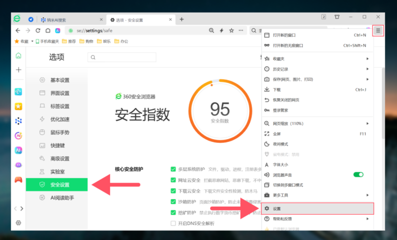 360平安浏览器内置智能识别引擎,为用户建立了六层立体防护系统。