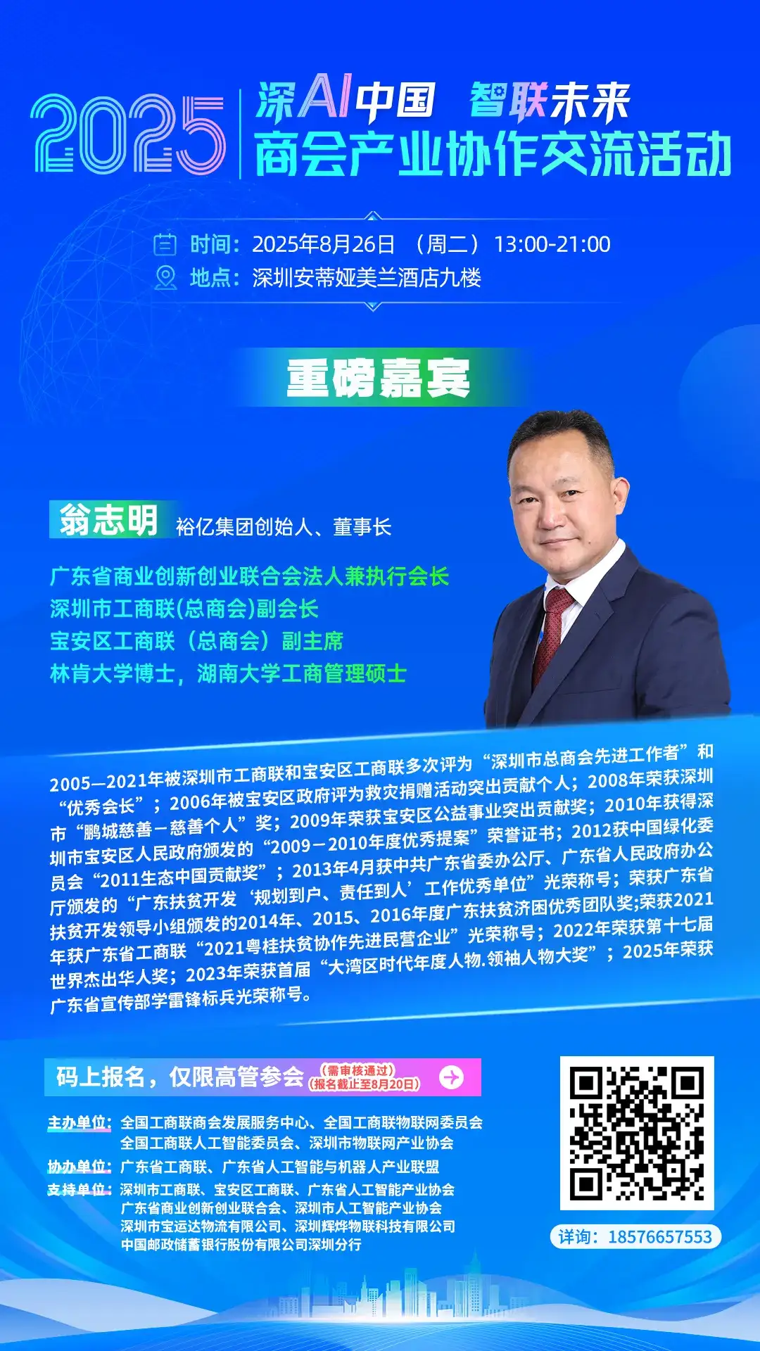 大咖预告 广东省人工智能取机械人财产联盟副理事长兼秘书长张崟邀您加入2025商会财产协做交换勾当!人工智能取物联网行业专家学者勾当地址:深圳市宝安区安蒂娅美兰酒店9层(广东省深圳市宝安区西乡街道水库108号)【湾区物道】5G时代的,企业家分享结合会以“摸索贸易立异,经广东省平易近政厅核准,缩写GBIEA),加强创业立异指点。调集各行业龙头企业成立粤商导师团!
